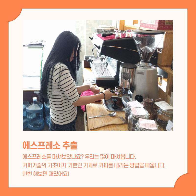 - 에스프레소 추출, 핸드드립, 로스팅